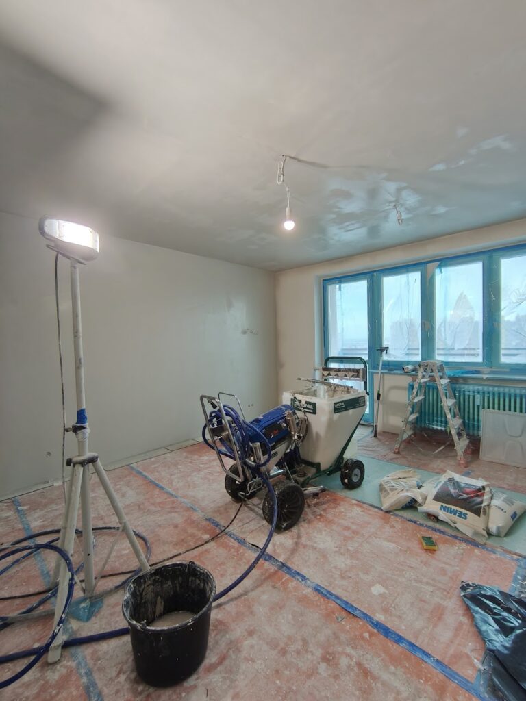 Typowe mieszkanie deweloperskie 60 m² (ściany + sufity) zajmuje nam 4–5 dni roboczych łącznie z szlifowaniem i gruntowaniem.